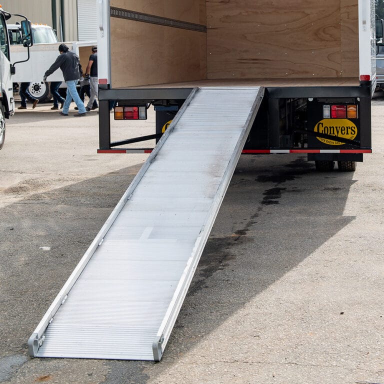 Engineered with a slip-resistant walking surface and sturdy construction, the walk ramp supports personnel carrying heavy items and the use of hand trucks and dollies. The gradual incline reduces strain on workers and speeds up the loading process compared to lifting cargo over a tailgate.